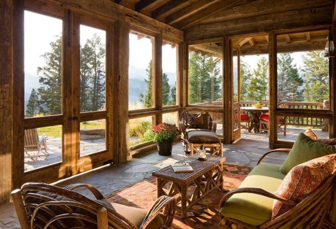 Веранды из бруса или сруба выглядят уютно и по-домашнему.