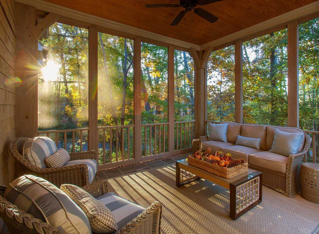 Важные факторы, на которые следует обратить внимание – периодичность проживания, влажность, температура внутри веранды, возраст террасы и основного здания. Недавние постройки лучше обшить по временной схеме шпунтованной доской