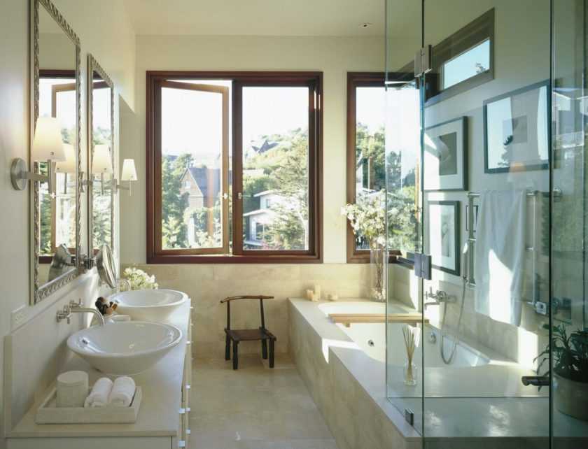 Если позволяет стена дома, то лучшим вариантом станет ванная с окном в частном доме. Можно окошко прорубить и в потолке.