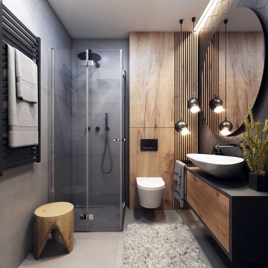 Современная ванная комната не любит хаос, поэтому простота должна также отличать линию мебели. Конструкции, построенные по плану из квадратов и прямоугольников, редко выделяются более ограниченной формой, но они не исключаются из концепций проектирования. В конструкции шкафов, комодов и тумб часто используются металлические, деревянные или стеклянные элементы, которые придают блокам легкость. В интерьерах преобладают модульные варианты, отделанные глянцевым покрытием, что позволяет адаптировать мебель к условиям помещения и потребностям домашнего хозяйства, а также освещать пространство, гарантируя стильную атмосферу. Популярны подвесные полки, встроенные в ниши, которые гарантируют оптимальное расположение для всех аксессуаров, так, чтобы удобные вещи не занимали место на поверхности, создавая беспорядок. В соответствии с функциональными правилами, стоит также подумать об органайзерах для выдвижных ящиков, специальных перегородок и магнитных полос, которые позволят сохранить порядок и чистоту.