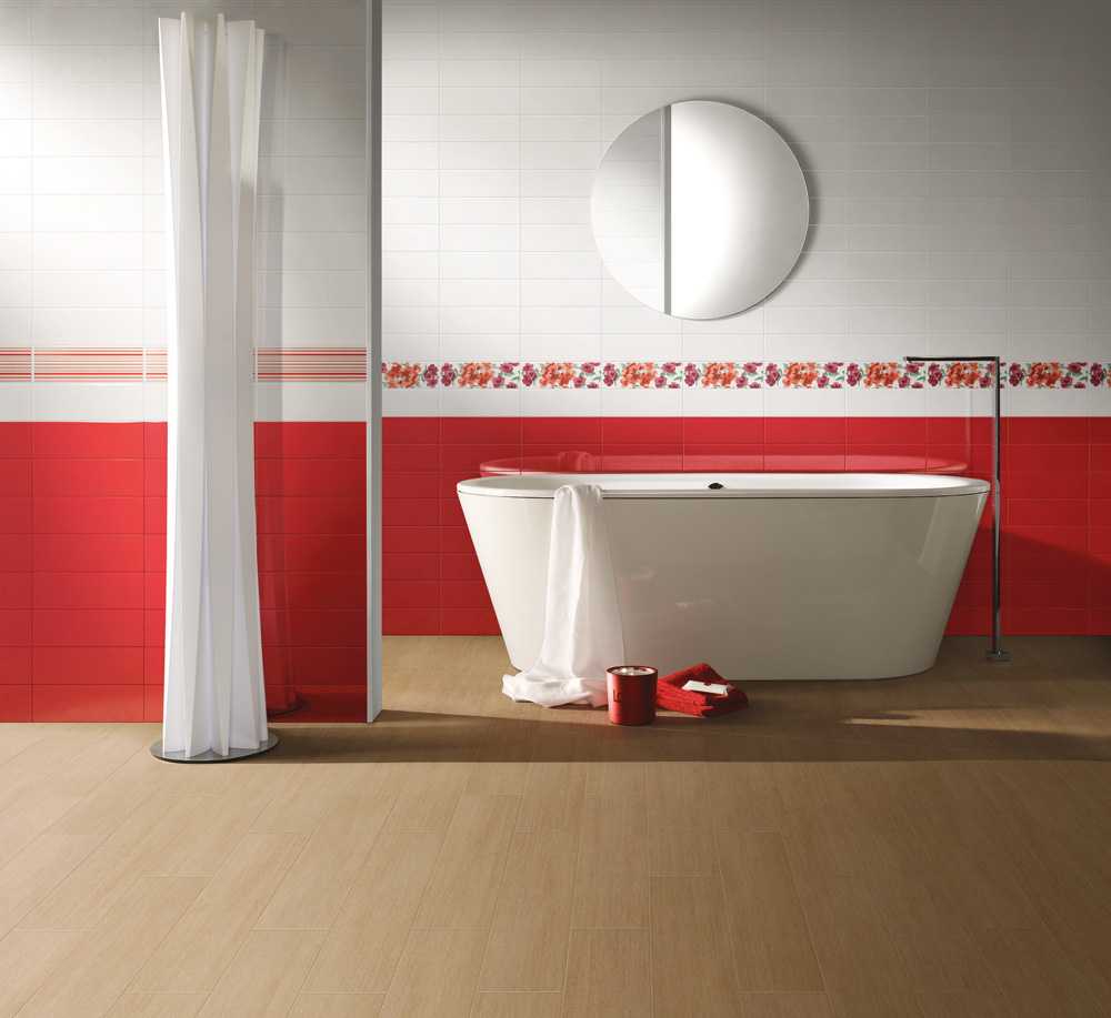 2. При выборе красной плитки для ванной комнаты не планируйте укладывать ее по всей стене. Оставьте немного свободного места сверху, чтобы цвет не перегружал вас. Плитка — лучшее решение для защиты пространства вокруг душа и ванны.