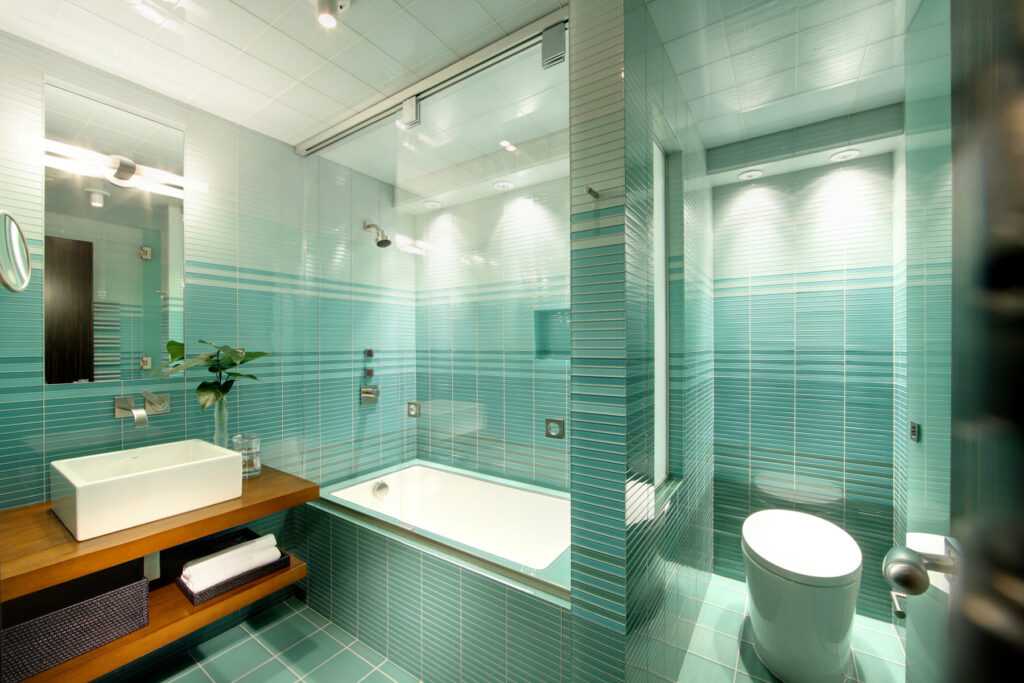 Глянцевый кафель подходит для небольших площадей, за счет бликов пространство выглядит больше, чем есть на самом деле.