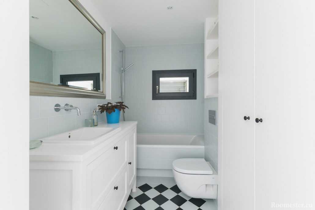 Здесь размещают унитаз, биде, раковину и ванну. При недостатке площади можно использовать комбинированный унитаз с функциями биде или специальную накладку-биде.