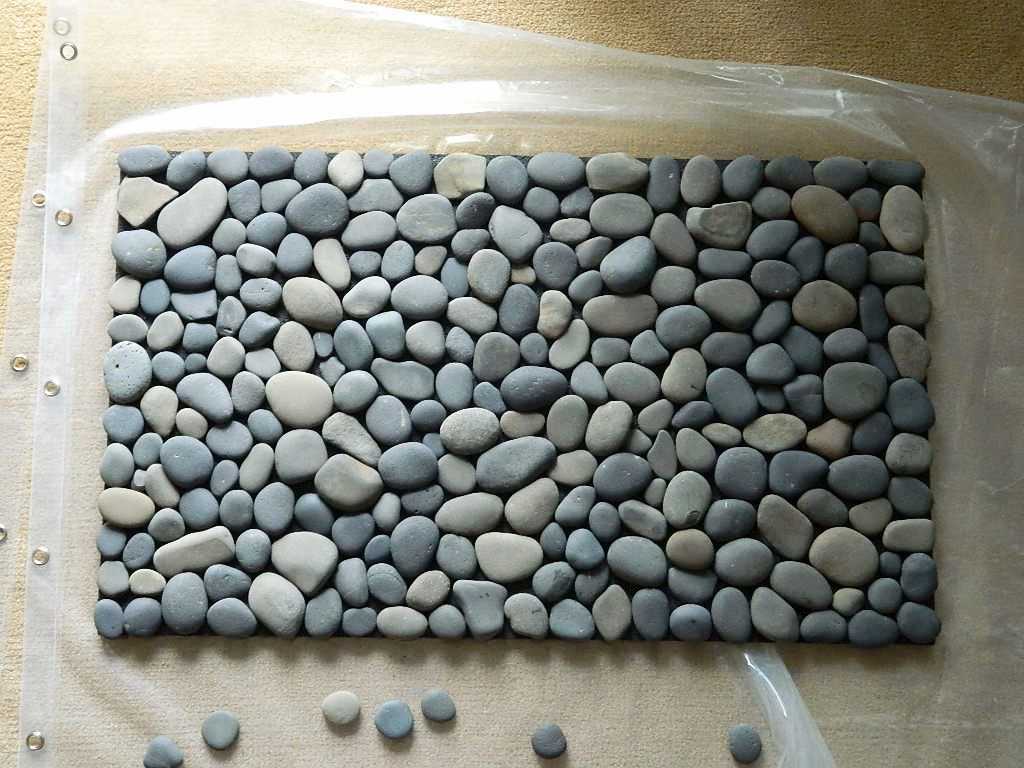 Как только все будет готово, поочередно приклеиваем каждый камень к коврику.