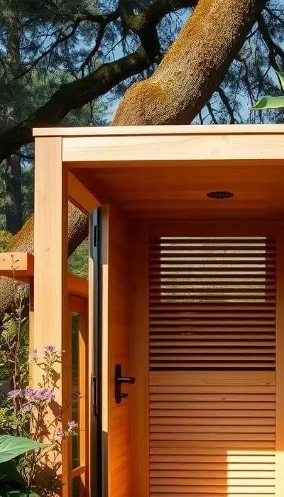 Модель 2: «Скандинавский минимализм» – деревянная душевая с ручным управлением жалюзи