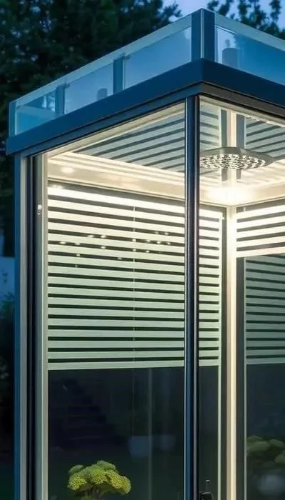 Модель 5: «Премиум» – стеклянная душевая с умным управлением жалюзи и датчиками освещенности