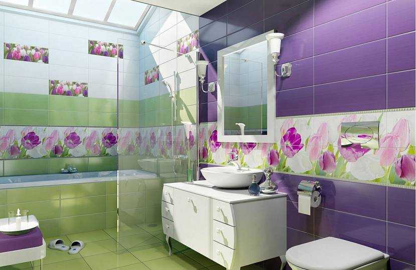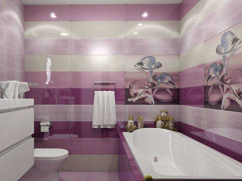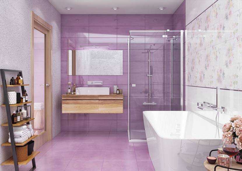 Сиреневая плитка для ванныИсточник rebathroom.ru