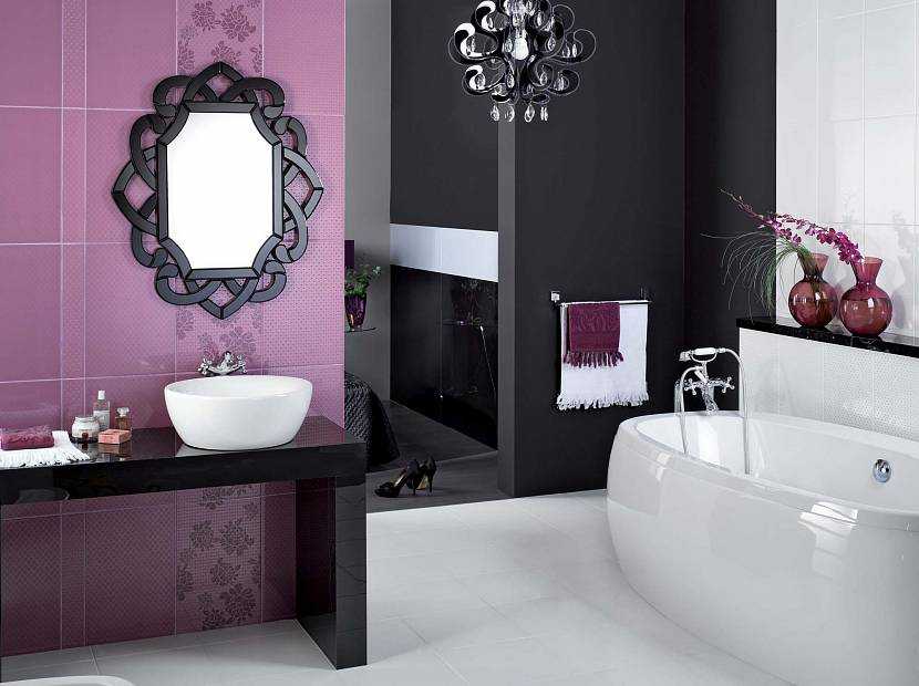 Ванная комната в черно-сиреневом цветеИсточник pyatigorsk.mkplitka.ru