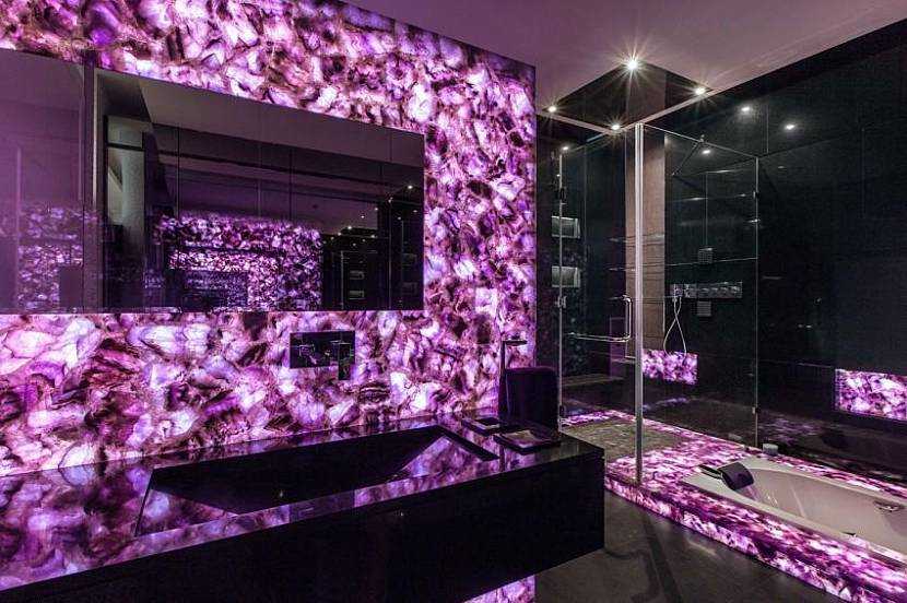 Ванная комната, оформленная в темном фиолетовом тонеИсточник lednews.lighting