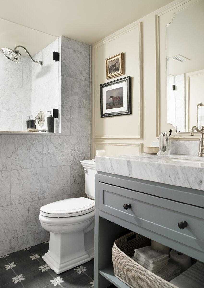 Как мы уже несколько раз указывали, укладка плитки от потолка до пола — не лучшее решение для маленьких ванных комнат. Здесь хорошо подойдет облицовка и покраска стен в соотношении 1/2 на 1/2 или 3/4 на 1/4. Однако если вы все же хотите уложить плитку от потолка до пола, используйте разные оттенки и декоративные планки (декоры), чтобы нарушить однообразие интерьера.