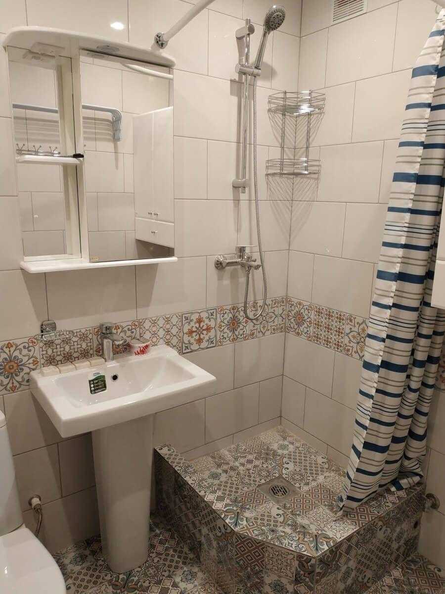 Лучшим выбором будет поставить керамогранит на пол и плитку на стене. Часто их можно приобрести в одинаковых узорах, что даст однородный и эстетичный эффект.