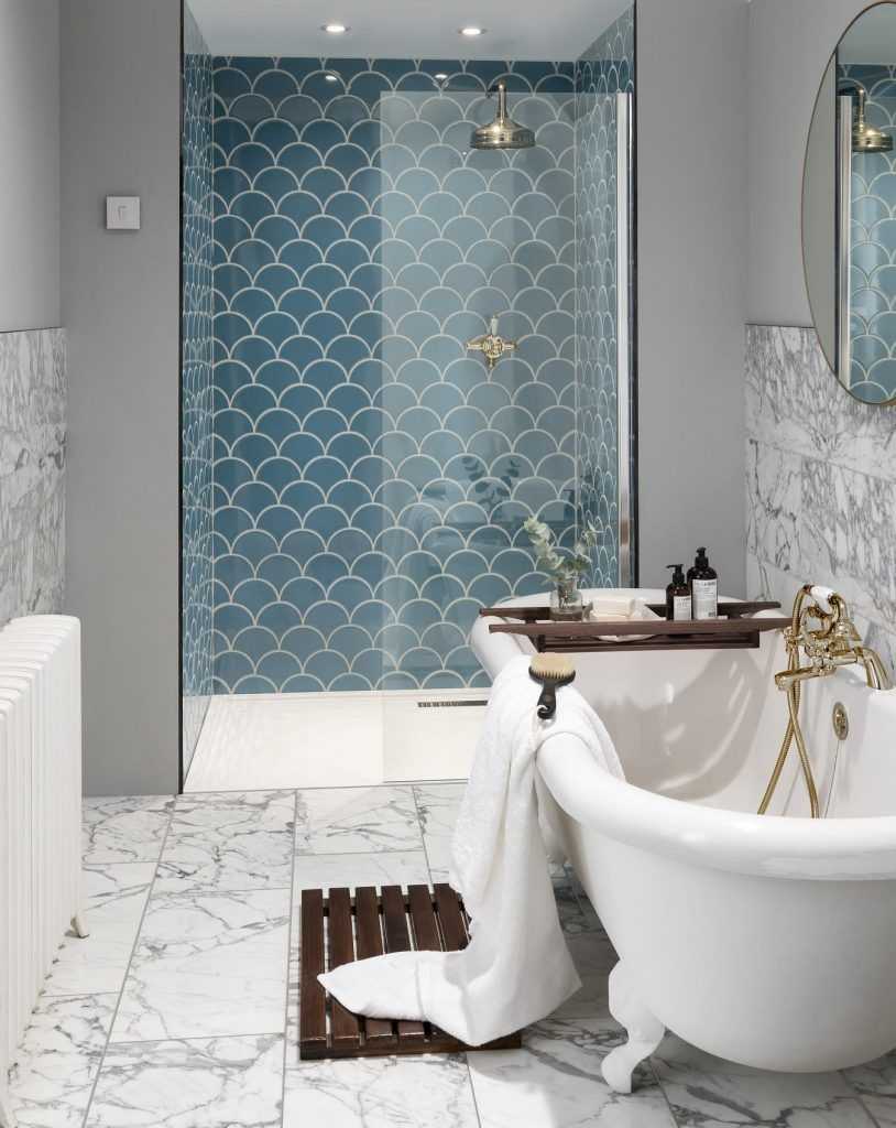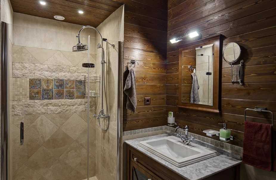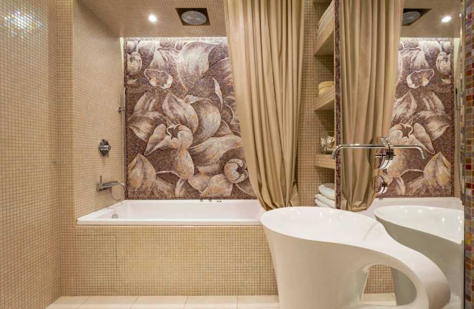Что касается оформления пола, то здесь все несколько иначе. Дизайнеры преимущественно используют мозаику, керамическую плитку, керамогранит или мрамор. Это наиболее износостойкие материалы, которые точно на долго сохранят привлекательный внешний вид. В некоторых случаях можно увидеть паркетное покрытие, но его надо беречь от влаги. Поэтому это не самое практичное решение. Лучше всего делать не скользящее и влагостойкое покрытие. Кроме того, оно должно хорошо смотреться с интерьером.