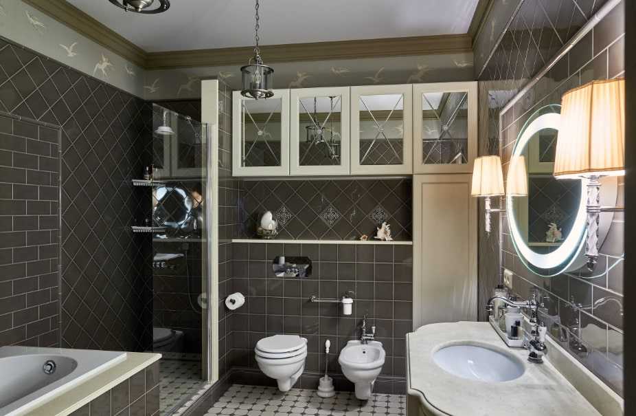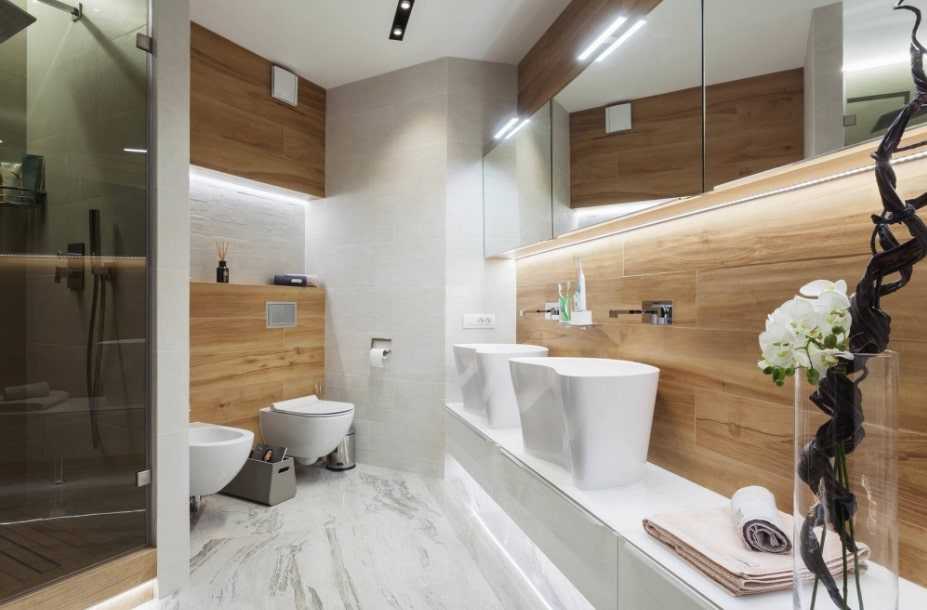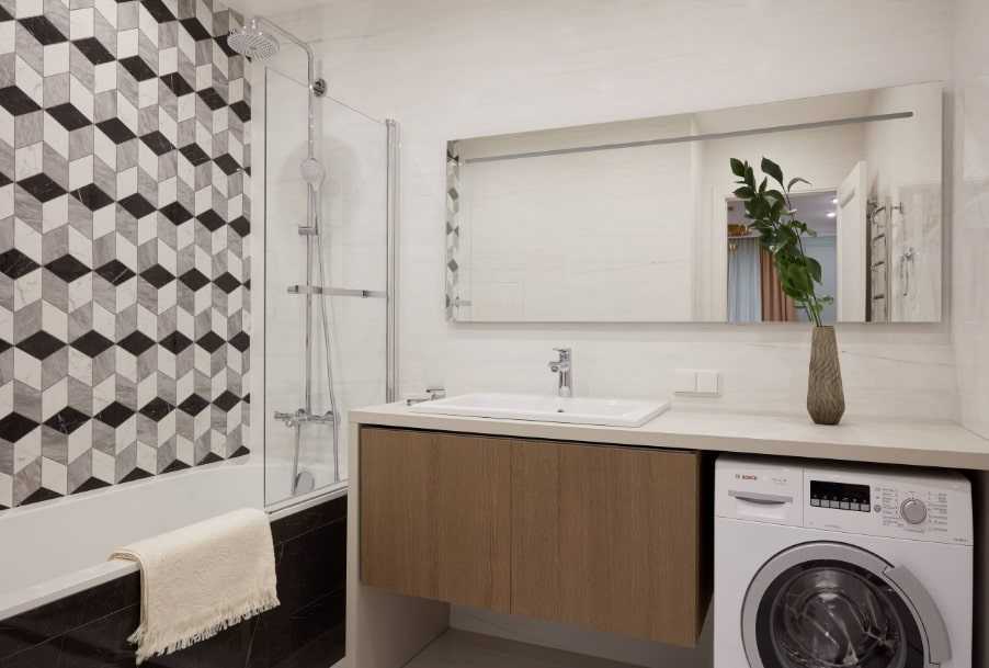 - во главу угла при оформлении должна быть поставлена оптимизация пространства — правильный подбор сантехники и мебели, а также их удачное расположение позволят добиться комфортного ощущения в помещении и визуального его увеличения;
