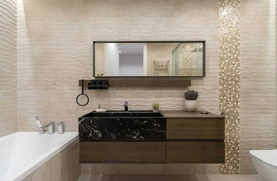 - сантехника начинает совмещать функциональную и декоративную роли — при этом особенная ставка делается на использование природных материалов, их сочетаний, подчеркивания гармоничной эргономики;