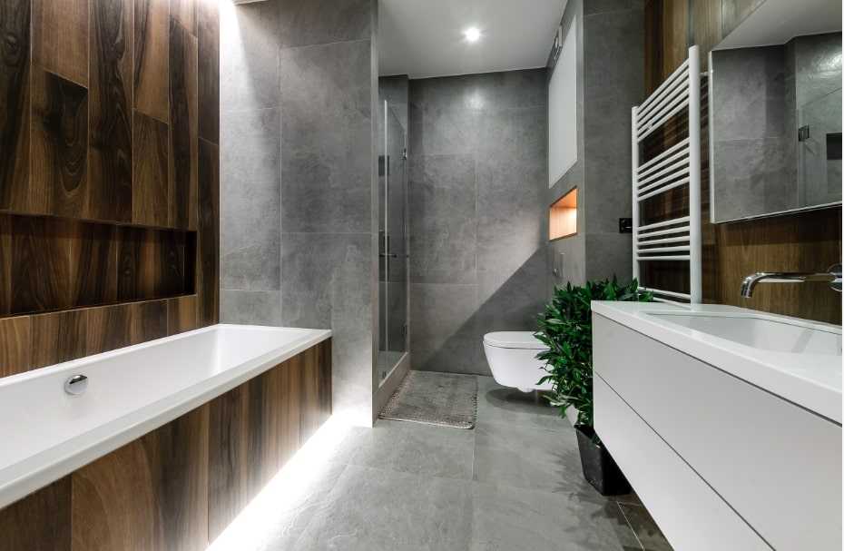 - планировка ванной комнаты не должна быть перегружена деталями — приветствуется лаконичность форм и линий;