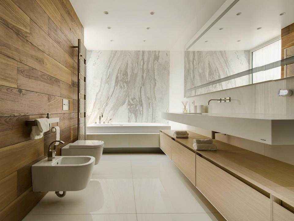 Ванная комната из дерева и камня будет интересной. Сам камень в интерьере может выглядеть довольно тяжелым, а добавление дерева в такой ванной комнате смягчит резкое выражение камня и придаст комнате более теплый, более уютный климат. Удивительно красива ванная комната из бетона и дерева. Прохладность бетона будет идеально нарушена деревянными элементами — будь то стены или деревянная мебель для ванной комнаты.