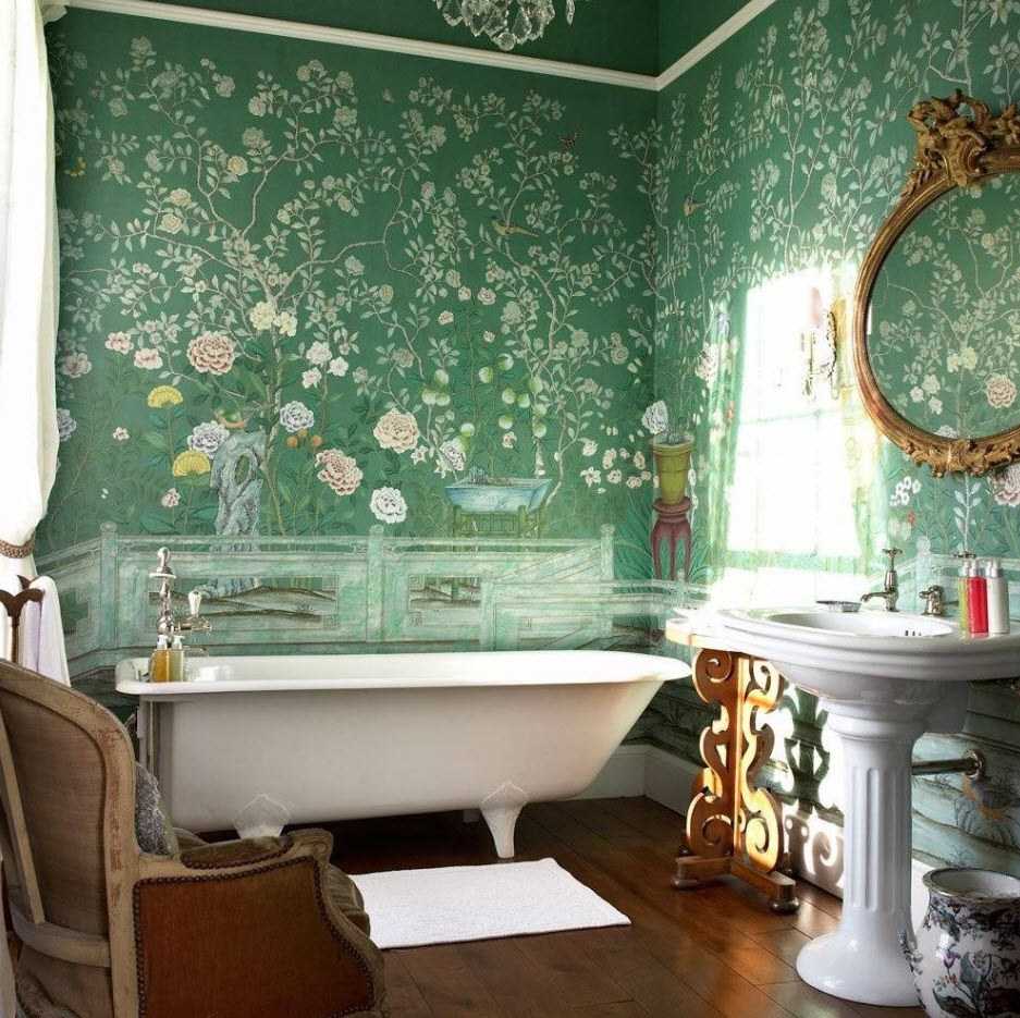 Покраска в ванной с большим количеством пара? Почему бы и нет? Однако от влаги его необходимо защитить ламинированным или клееным стеклом, возможно использование специального вещества. Цветочные мотивы добавляют глубину интерьеру ванной комнаты. Эти эффекты также усиливают ретро-аксессуары. Отличная идея, чтобы оживить ванную комнату.