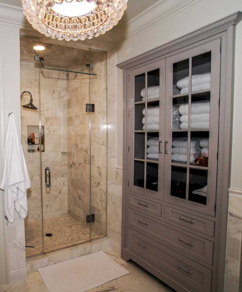 Встроенная мебель помогает поддерживать порядок в ванной комнате