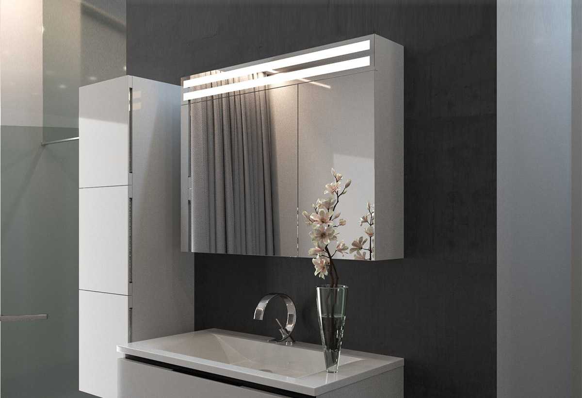 Зеркало является обязательным атрибутом в ванной комнате. Шкаф-зеркало – сочетание удобства и многофункциональности, ведь в нем можно не только хранить множество необходимых вещей, но и использовать как зеркало для того, чтобы привести себя в порядок, сделать макияж для девушек. За счет такого шкафа экономится много пространства, что особенно актуально для небольшой ванной комнаты. Также он влияет на визуальное увеличение пространства за счет большого зеркала, что положительно влияет на восприятие пространства.