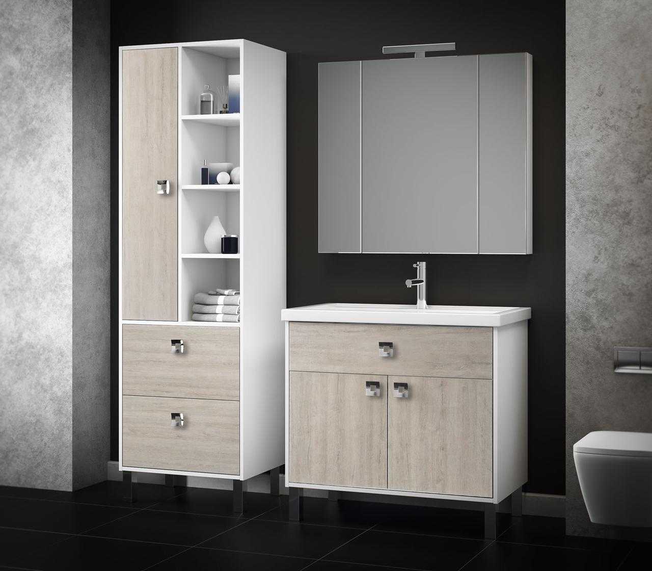 С одной стороны, могут быть ящики и полки, а с другой – ниши и крючки. Модель органично вписывается в нестандартные помещения, в душевые комнаты.