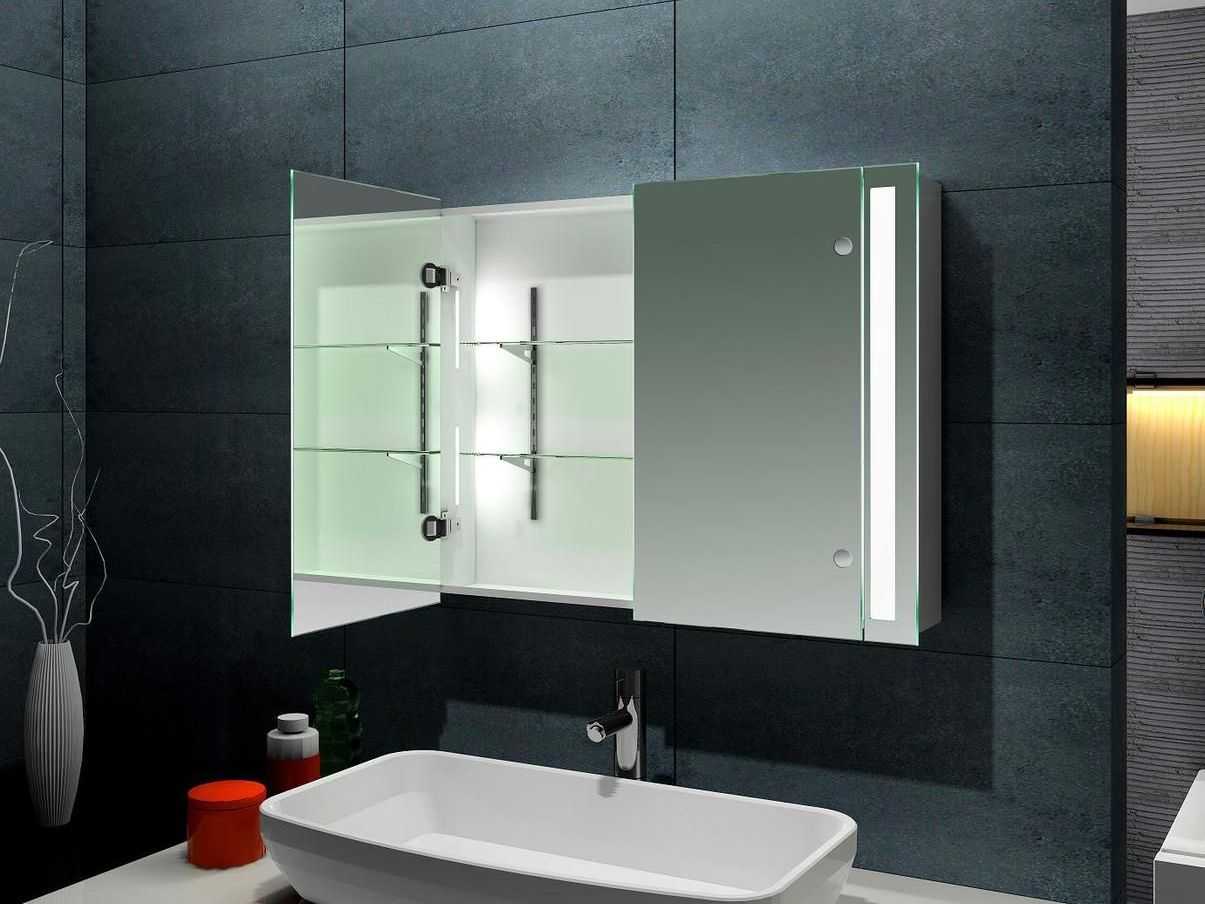 - Шкаф с зеркалом – устаревший вариант, в котором имеется большое зеркало с небольшой окантовкой. Зачастую в нижней части такого шкафа устанавливается полка, что компенсирует недостатки, вверху можно установить точечную подсветку.