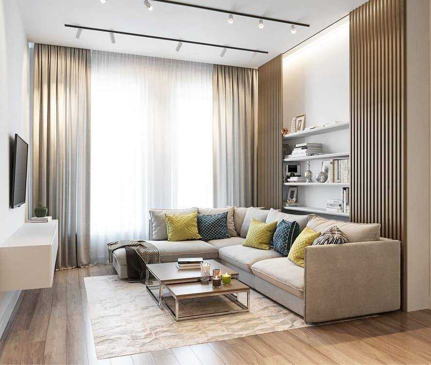 Проходная гостиная может представлять собой практичную зону развлечения, отдыха, приготовления и приема пиши. Стоит только грамотно распланировать пространства, учитывая личные интересы.