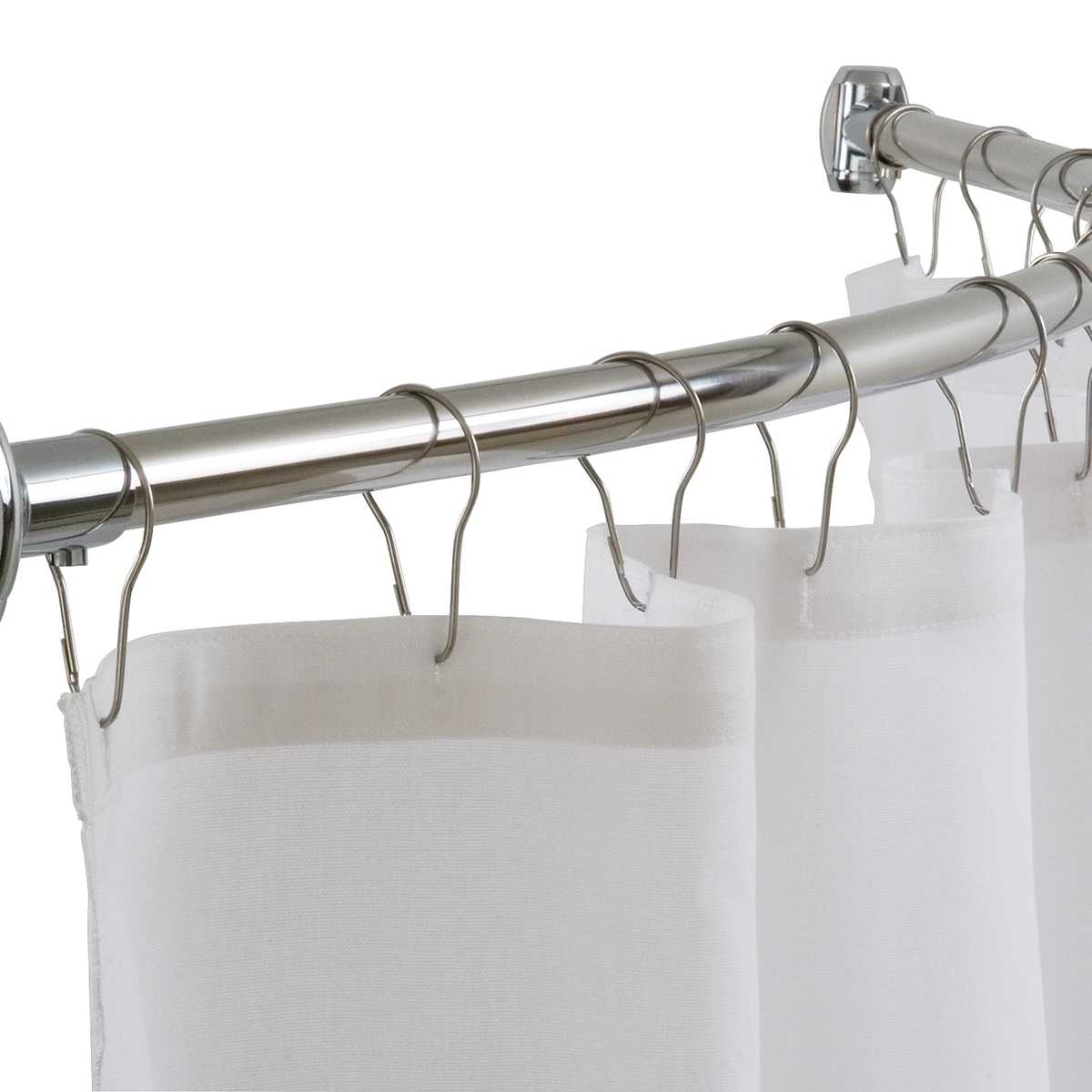 Компромиссом между прямым и гибким карнизом выступают дуги. Есть модели, которые крепятся к противоположным стенам на шарнирных опорах, то есть их можно установить под нужным углом к стене. Фактически такая штанга в виде дуги повторяет внешний контур большинства моделей акриловых ванн.