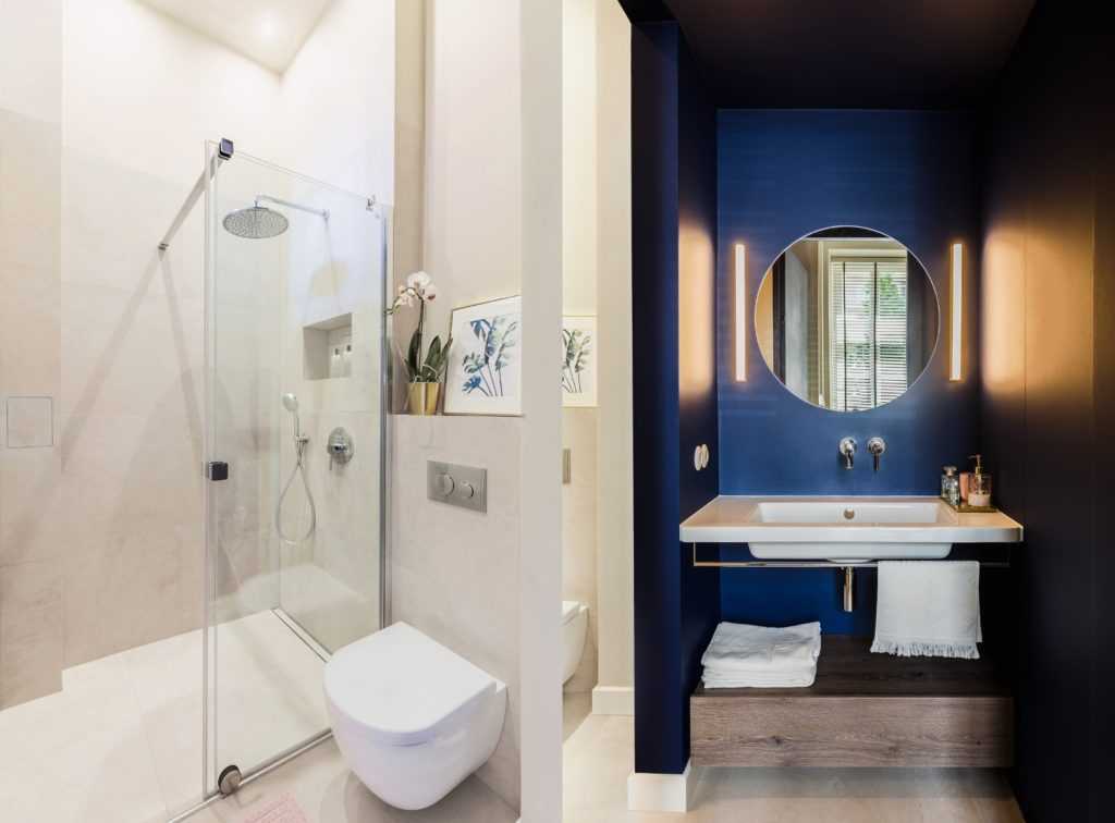 Все оттенки синего всегда в тренде. Начиная от серо-голубых плиток, заканчивая отделкой стен в синих тонах, заканчивая деталями цвета моря. Дизайн ванной комнаты — это не только правильное расположение мебели, но прежде всего подбор соответствующих цветов. Ванная комната все чаще становится дизайнерской комнатой, которая должна соответствовать стилю других комнат или наоборот — выделяться из них, создавая отдельный интерьер.