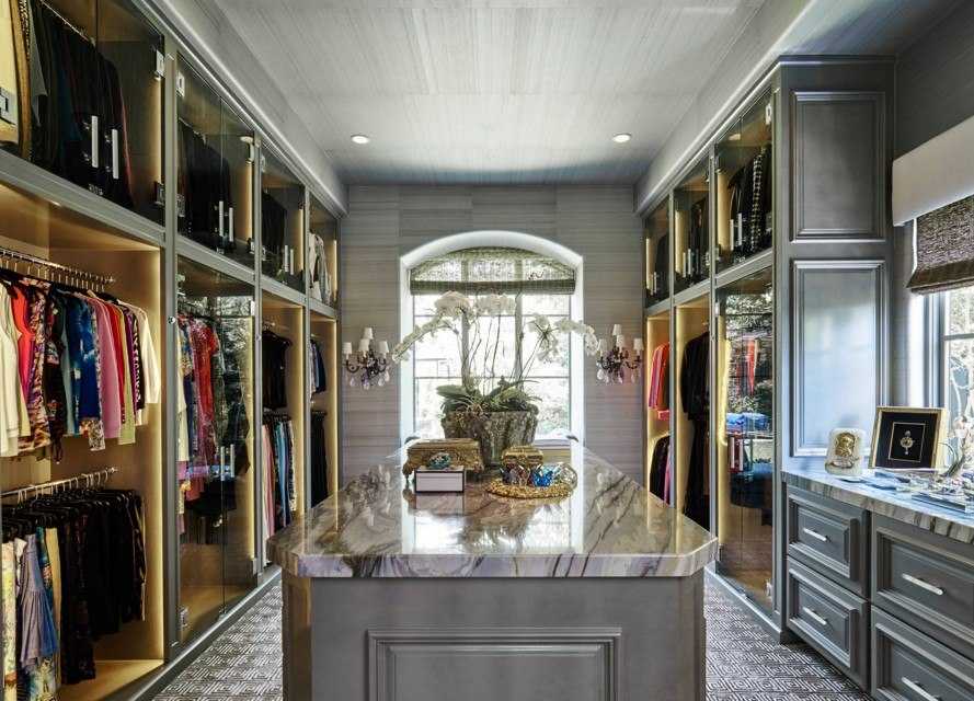 - благодаря современным отделочным материалам гардеробная может стать центральным элементом всей комнаты.