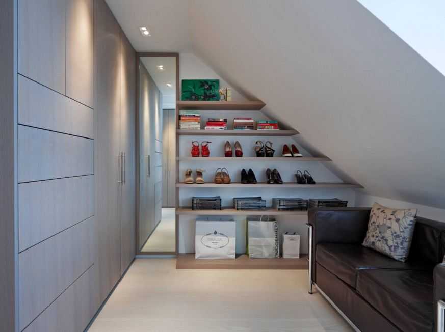 - размещая гардеробную в нишах и углах, можно исправить или скорректировать геометрию комнаты;