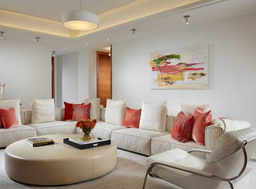 Роскошный стиль барокко в интерьере предполагает использование гармоничной оттеночной гаммы. Дизайнеры предпочитают комбинировать белый (молочный, слоновой кости) с позолотой. Снежную палитру можно заменить на нейтральные варианты (беж, песочный) и желтый с перламутром.