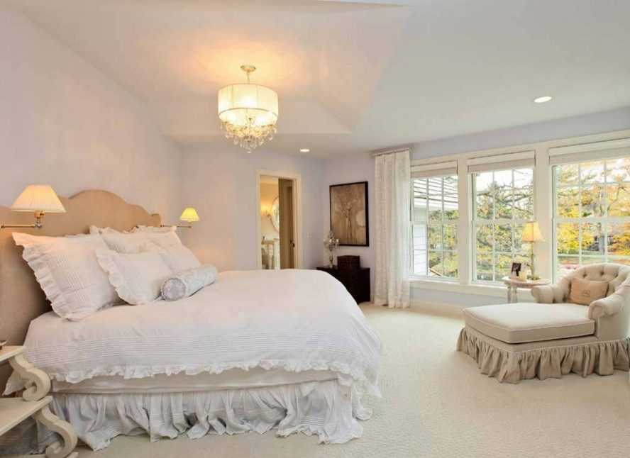 Отличным украшением классической спальни считается большая люстра с изысканными подвесками