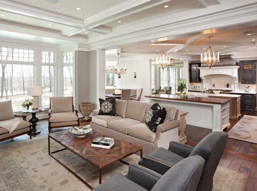 Для создания интерьера времен Людовика XV современные гостиные меблируют уютными креслами и роскошными диванами. Они так же, как исторические аналоги, имеют выгнутые ножки, высокие спинки, декорированы художественной резьбой, золочением и мозаикой. В просторной гостиной могут размещаться одновременно несколько диванов, формируя зоны отдыха. Количество мягкой мебели зависит от размера комнаты.