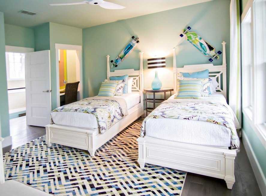 В бюджетном проекте интерьера стены можно окрасить акриловой краской в тон мебели и потолочного пространства. Восприятие общей картинки в упрощенном варианте не изменится.
