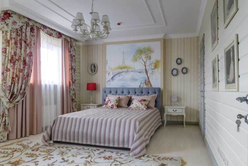 Спальни в хрущевке маленькие, и оформление их в стиле прованс нужно тщательно продумать. Стены можно оклеить обоями с изображением цветов, листьев. Если комната узкая, их лучше просто побелить. Это позволит визуально расширить пространство.