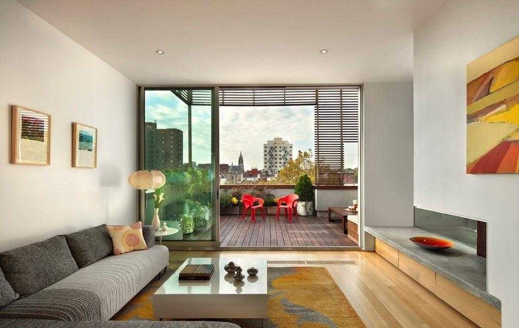 Гостиная с выходом на большой балкон или террасу