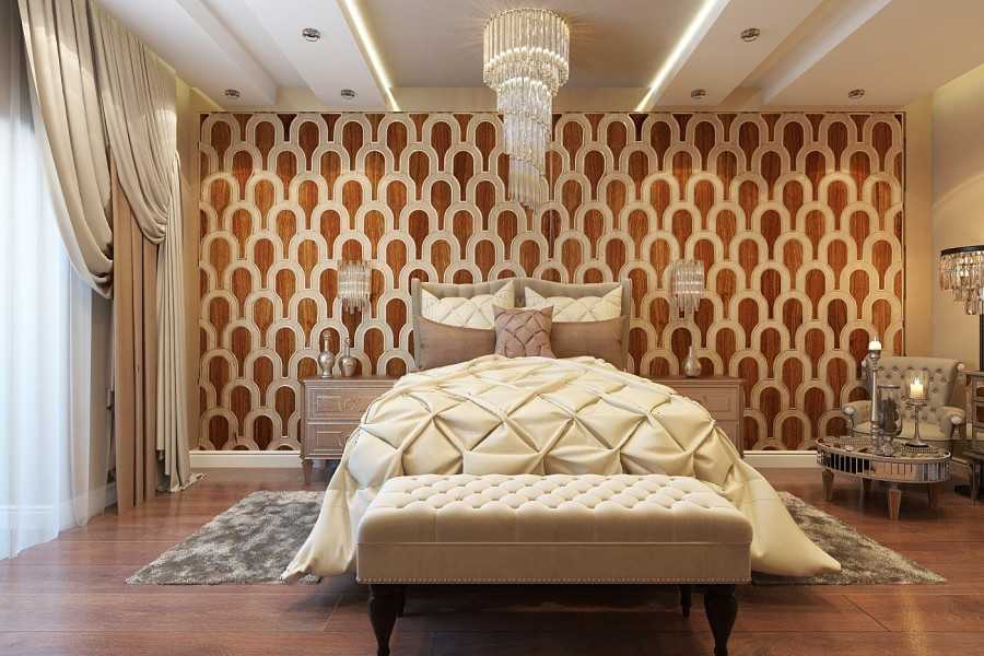 Для оформления стен в спальне можно использовать самые разные материалы: