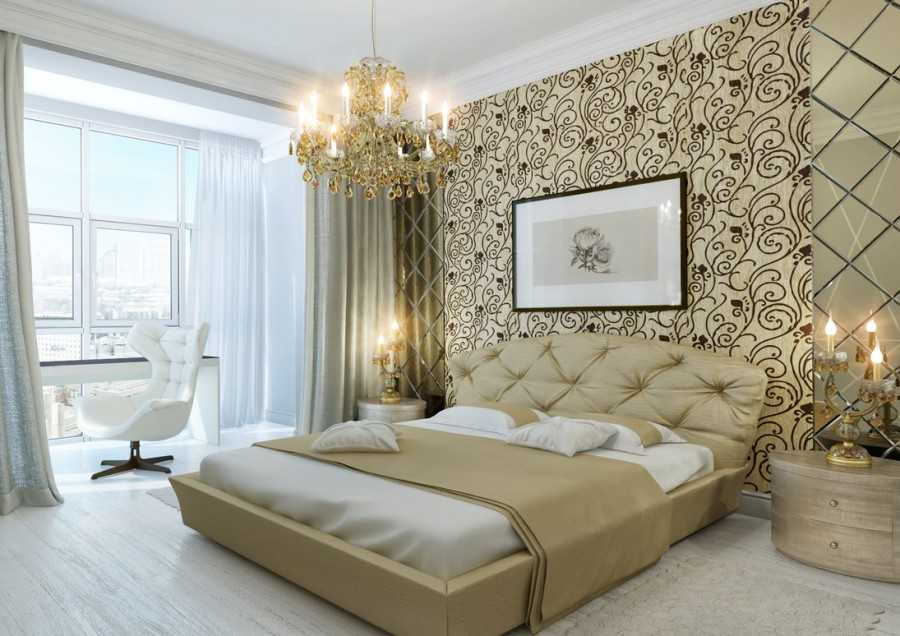 На фото дизайна интерьера спальни 16 кв. м видно, что современная классика вполне допускает использование в интерьере современных технологий. Нередко в такой дизайн интегрируют систему «умный дом», что очень удобно.
