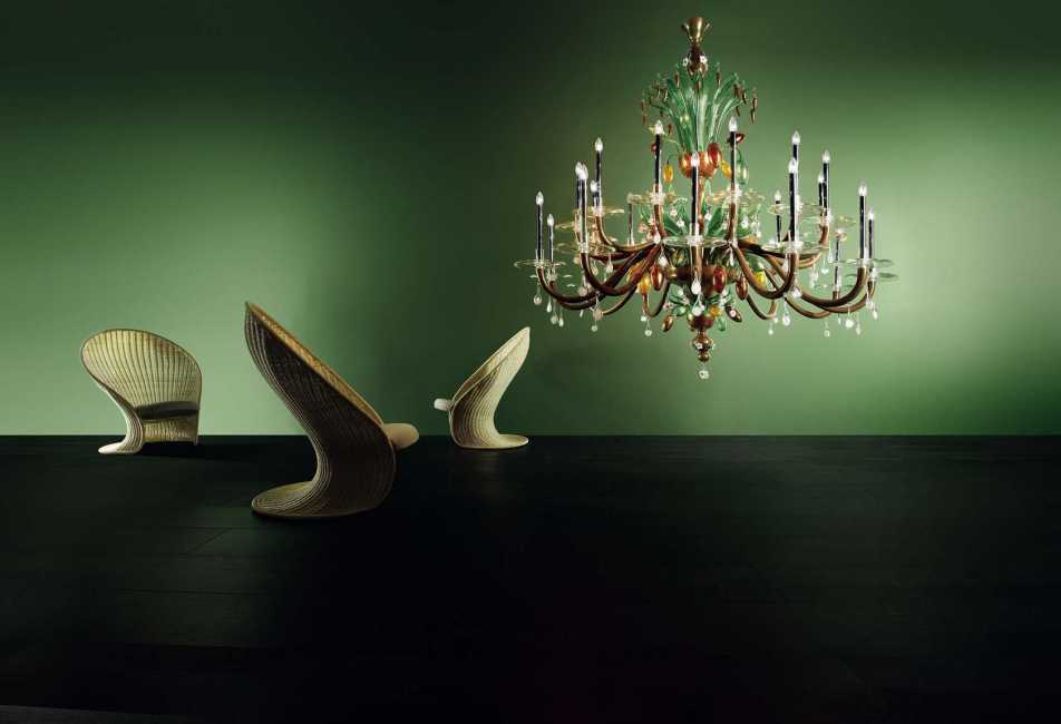 - Люстра по стилю и колористике гармонирует с отделкой комнаты и служит роскошной изюминкой, завершающей композицию, как драгоценная брошь дополняет наряд от-кутюр.