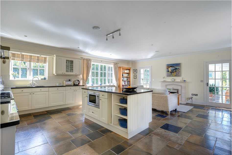 Уже давно популярный у нас угловой диван активно используется в самых разных кухнях, но самое большое распространение такая конфигурация получила в кухнях среднего размера и больших помещениях.