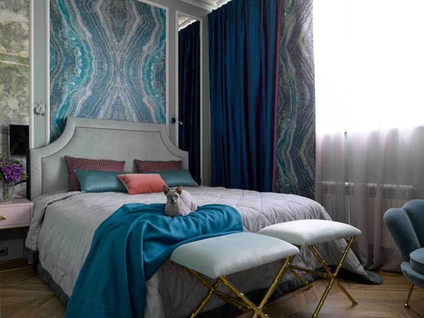 Дизайн спальни с двумя окнами будет немного сложнее. Он будет зависеть от расположения проемов. Если они расположены близко, то конструкция из штор может быть одна на два окна. При значительном расстоянии каждый проем декорируется отдельно, желательно, в классическом стиле.