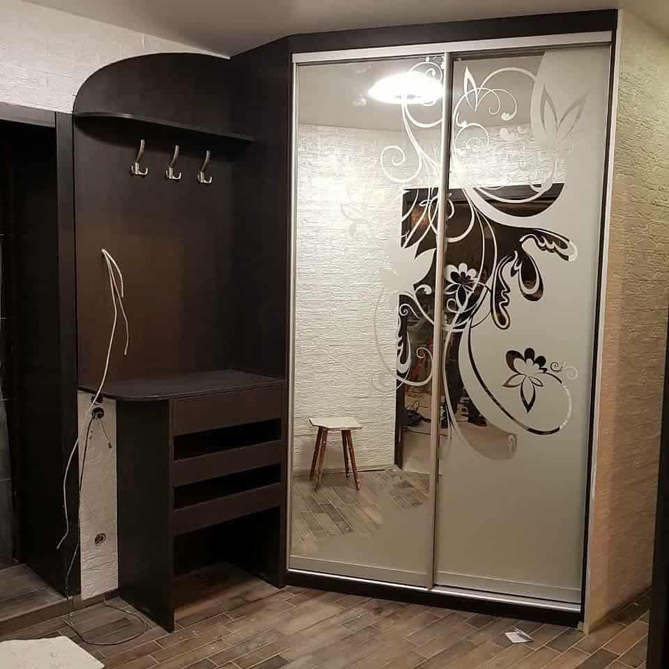 Чтобы сделать интерьер прихожей 2020 года более интересным, на зеркальную поверхность наносят узоры или покрывают декоративной изморозью.