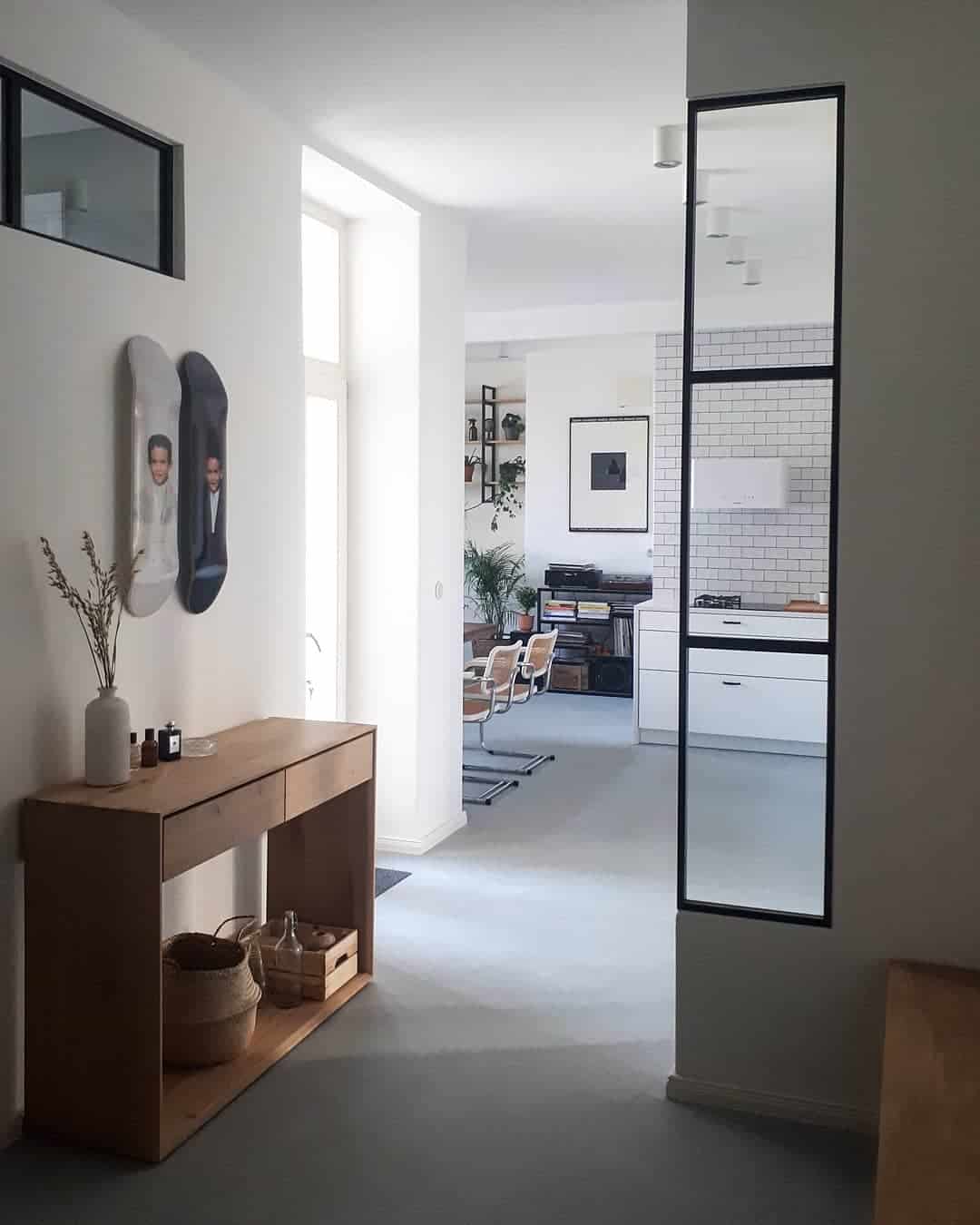 В современный небольшой коридор также стоит добавить больше света, тем более что в нем обычно нет окон. Тем не менее, есть простой способ сделать это. Двери, ведущие в соседние помещения, должны быть застеклены. В результате комната будет ярче, а значит и будет казаться больше.