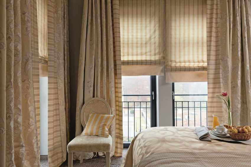 Если слишком тяжелые темные «ночные» портьеры все-таки смущают, а необходимость затемнять помещение во время сна остается, можно заменить их на жалюзи или рулонные шторы. В собранном состоянии они не бросаются в глаза, а когда понадобятся, надежно выполняют свою функцию. Кроме того, эти предметы оконного декора позволяют более полно использовать пространство на подоконниках.