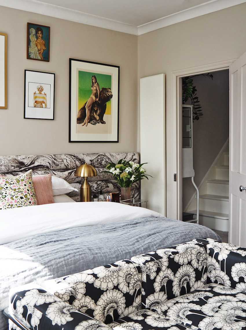 Картины в интерьере спальни поддерживают атмосферу и стиль. Повесьте их над кроватью или поставьте на полку над ней, либо разместите напротив.