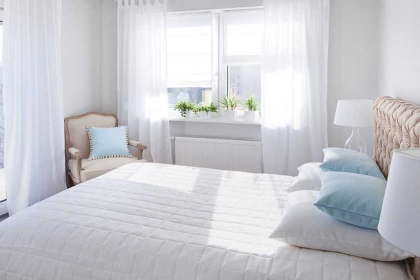 Спальню сложно представить без штор, хотя некоторые стили предполагают отказ от занавесок. Если подобное отсутствие драпировок не входит в планы хозяйки, то предпочтение отдается легким натуральным тканям, пропускающим свежий воздух и придающим комнате оттенок нежности.