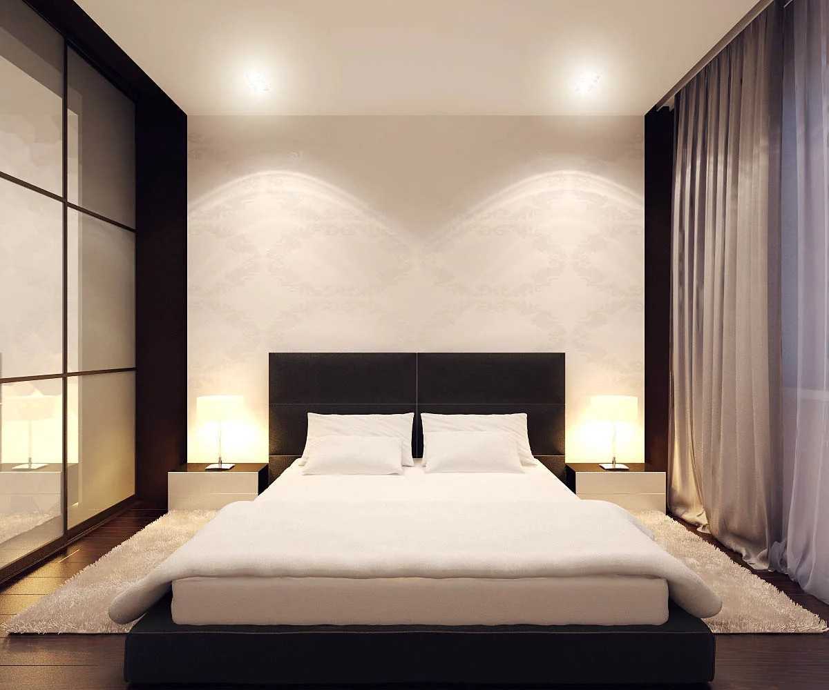 Это направление сочетает в себе простоту и изысканность, поэтому его выбирают те, кто устал от ярких цветов и нагромождения вещей. Основные особенности оформления: минимальный комплект мебели и декоративных элементов. Это очень удобно для спален площадью 8-10 м?.