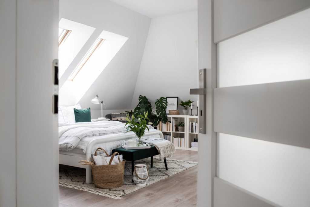 Начните с основного источника света, который должен быть расположен в центре комнаты. Если комната длинная и скосы расположены с обеих сторон, вы можете выбрать несколько отдельных подвесных светильников, расположенных на одинаковом расстоянии друг от друга. В исключительно просторной комнате стоит использовать плафоны и бра, которые позволят вам направить свет в выбранное место. Делайте ставку на теплую цветовую температуру — благодаря ей вы создадите приятную атмосферу и успокоитесь перед сном.