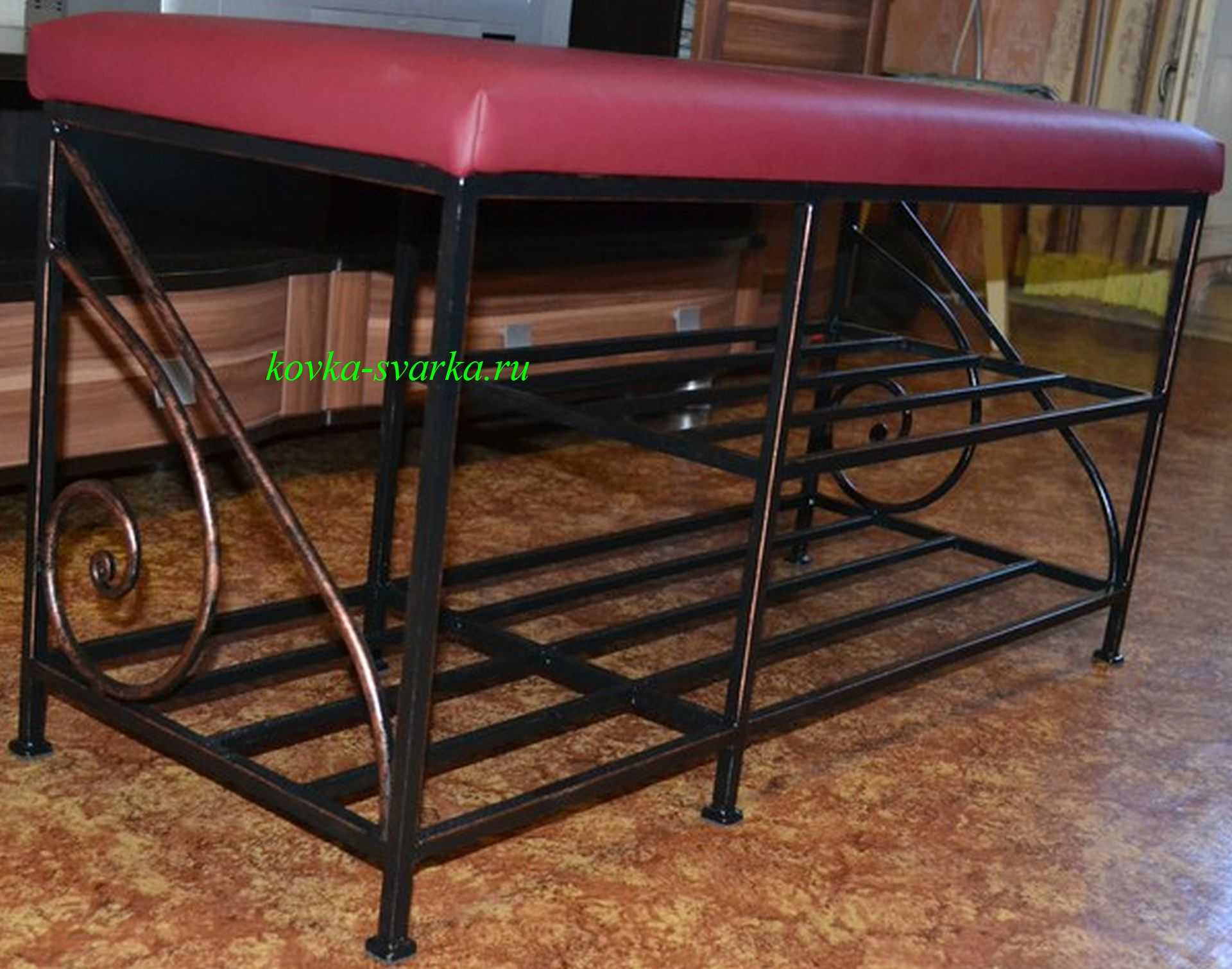 Кованый пуфик в прихожую считается одним из важнейших элементов данного помещения. Если добавить к нему обувную полочку, имеющую несколько ярусов, в таком случае можно разместить на ней обувь.
