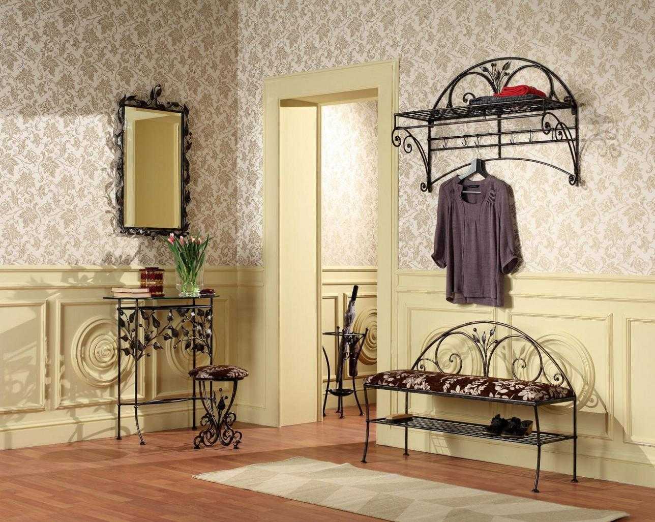 Прихожая, обставленная кованой мебелью, смотрится изысканно и нарядно. Примечательно, что ковка как искусство возникла несколько веков назад. На Руси данный способ украшения мебели практически не использовался (с помощью ковки декорировали только оружие и доспехи). Оформление замков металлическими деталями было популярным в Европе. Во времена правления Петра I, когда между Россией и западными странами начал происходить обмен различными традициями и ценностями, интерьер и внешнее оформление русского жилища обогатились новыми вариантами декора, включая ковку. С тех пор технологии изменились мало, процесс создания мебели требует столько же времени и усилий, как и раньше.